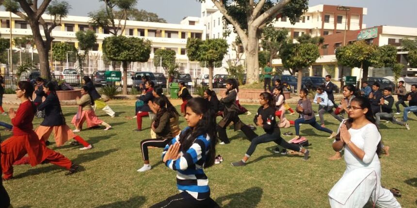 Yoga Classes from 16th Jan 2020: “Meditation and concentration are the way to a life of serenity.” The college organized 15 days workshop on Yoga in association with Mr. Ganesh Kumar Parashar. The campus at Agrawal College brought a sense of joy and calmness by Yoga classes. The college facilitated the students with a pleasant learning environment in its lush greenery and beautiful architecture. Yoga practices helped them to relieve their stresses and academic pressure and also helped to improve memory and concentration.