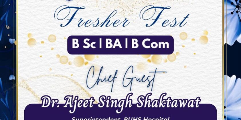 The Fresher’s Fest for B.Sc., B.A., and B.Com. students! We are honored to have Dr. Ajeet Singh Shaktawat, Superintendent at RUHS Hospital, as our Chief Guest. Get ready to kick-start your college journey with excitement.