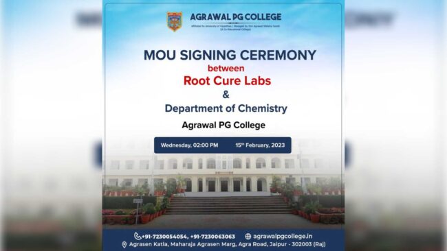 Root Cure Labs and Department of Chemistry at Agrawal PG College Join Hands to Advance Scientific Research.