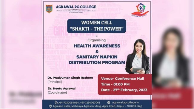 Women Cell Shakti -The Power, has Organised the Health Awareness & Sanitary Napkin Distribution Program On 27th February At AGRAWAL PG COLLEGE .