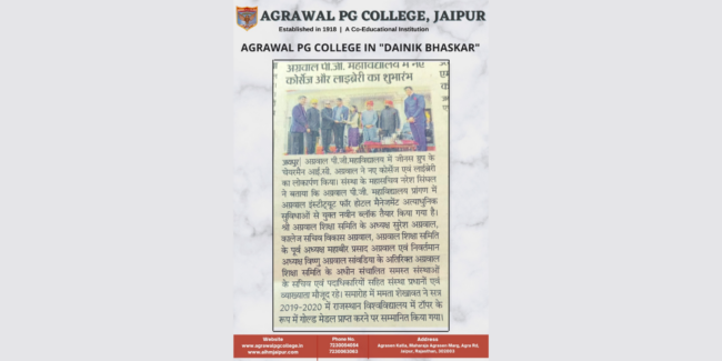 APGC celebrated Republic Day with great enthusiasm and fervor. On this occasion, a new library building on the APGC campus was inaugurated by Genus Group Chairman Mr. I.C. Agrawal. Mamta Shekhawat, student of M.Sc. (ZOOLOGY), was also felicitated for getting gold medal in Rajasthan University in 2019-20.